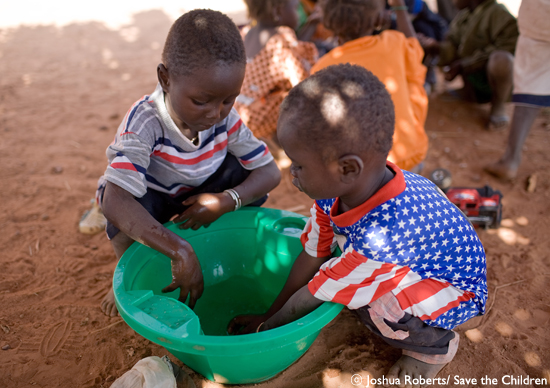 사진/ 말리 시카쏘(Sikasso) 지역 이폴라(Ifola) 마을의 보카르(4세)와 라나사(6세)가 점심을 먹기 앞서 손을 씻고 있습니다.