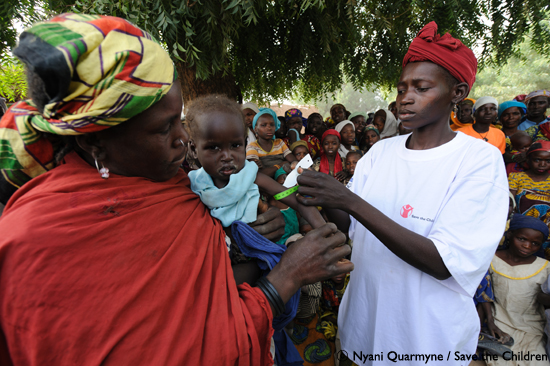 보건서비스 제공: 세이브더칠드런은 서아프리카 지역의 보건요원을 지원하고 있습니다. 2012년까지 지역보건봉사자와 보건요원 수백 명을 양성하여 영양실조를 초기에 치료하고, 전통 산파에게 현대식 조산기술을 익히도록 함으로써 이 지역의 아동과 여성 90만 명을 지원하는 것을 목표로 삼고 있습니다. • 부르키나파소와 니제르, 말리에서는 어머니가 영유아 자녀에게 모유를 주도록 올바른 수유법을 전파하고 있으며, 동시에 홍역과 같은 주요 질병에 대한 예방접종을 실시하고 있습니다.