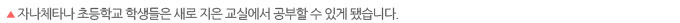 2014년 대한사립중고등학교장회의 후원으로 세이브더칠드런과 파트너 기관인 차일드컨선드센터(Child Concerned Center)는 교육 환경이 가장 열악했던 자나체타나 초등학교의 지원을 시작했습니다. 총 152명의 아동을 대상으로 교육의 질적 향상과 아동친화적인 교육 환경을 조성하고자 했습니다. 교사의 역량을 강화하고, 교육 자료와 놀이도구 등을 지원했습니다. 학교에 영유아발달센터를 짓고 영유아발달 교사 1명을 교육하고 채용해 미취학아동의 교육환경을 향상시켰습니다.