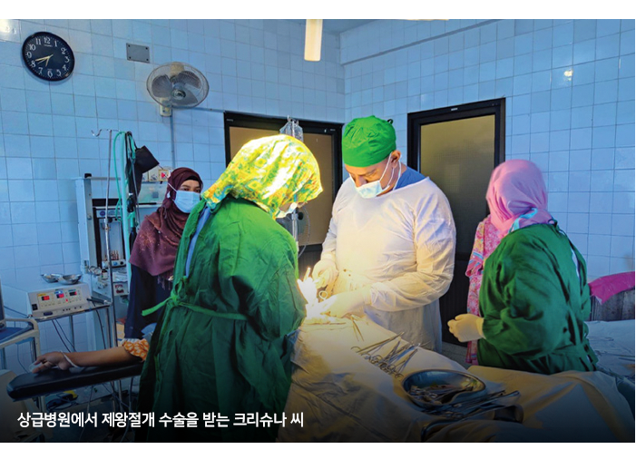 샤키라 씨는 세이브더칠드런이 랑푸르 주에 도입한 응급 이송 연결망 덕분에 무사히 출산할 수 있었습니다. 예정일을 앞둔 어느날 밤, 평소와 다른 태동에 불안감이 엄습했습니다. “무언가 잘못 되었다는 느낌이 들어 곧장 보건소로 갔어요.” 조산사 사디아 씨는 즉시 심각성을 파악하고 곧바로 큰 병원으로 긴급 이송 조치를 취했습니다. 검사 결과 샤키라씨와 태아의 안전을 위해 응급 제왕절개가 필요하다는 의사의 소견이 있었습니다. 늦은 시간이었지만 신속하게 수술이 진행될 수 있었고, 덕분에 산모와 아기 모두 무사할 수 있었습니다.