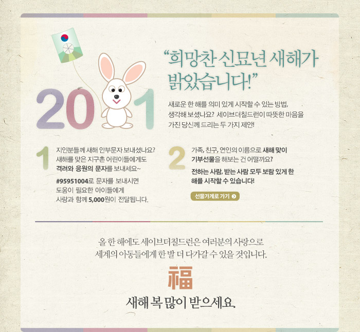 새해를 맞이한 지구촌 어린이들에게 응원의 문자를 보내주세요!