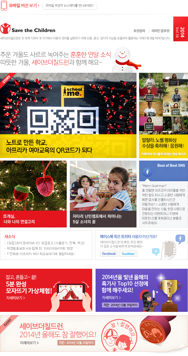 2014년 겨울, 후원자님이 있어 세상은 더욱 따뜻합니다.
