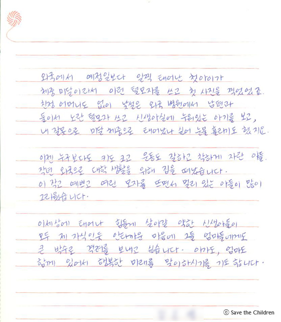 시즌 4가 끝나는 2011년 3월 15일까지 주중 매일 오후 2시 <신생아 살리기 모자뜨기 캠페인> 시즌2와 시즌3에 참여해주신 모자 후원자님의 사연을 소개합니다.