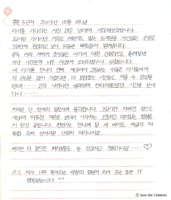 시즌 4가 끝나는 2011년 3월 15일까지 주중 매일 오후 2시 <신생아 살리기 모자뜨기 캠페인> 시즌2와 시즌3에 참여해주신 모자 후원자님의 사연을 소개합니다.