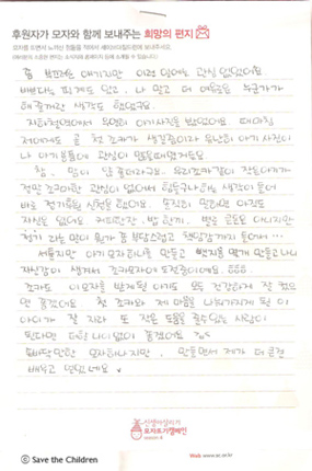 오늘은 시즌 4에 참여하신 모자 후원자님의 따뜻한 사연입니다.