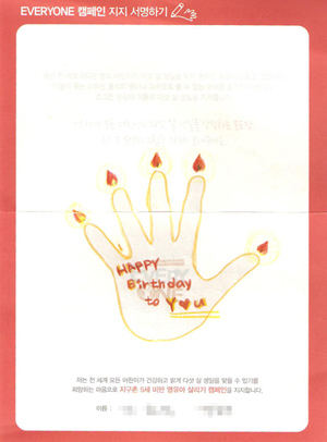 사진/ 조카 같이 아기가 힘들어 보여 참여하셨다는 모자 후원자님의 사연과 5세 미만 영유아살리기 캠페인 지지 손바닥 그림