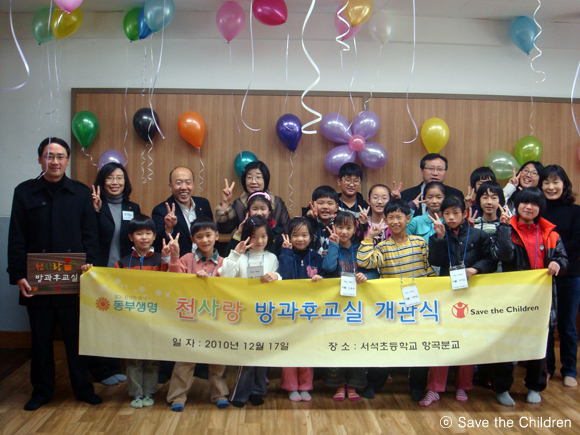 세이브더칠드런은 생명보험 사회공헌위원회, 동부생명과 함께 진행 중인 '천사랑 분교 방과후교실 지원사업'과 관련하여 지난 12월 17일 항곡분교에서 방과후교실 개관식을 진행하였습니다.