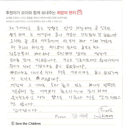 세이브더칠드런에게 감사하며