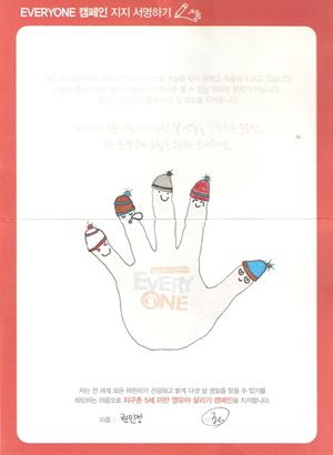 사진/ 모자를 떠서 신생아에게 희망을 줄 수 있어 신난다는 모자 후원자님의 사연과 신생아살리기 모자뜨기 캠페인 지지 손바닥 그림