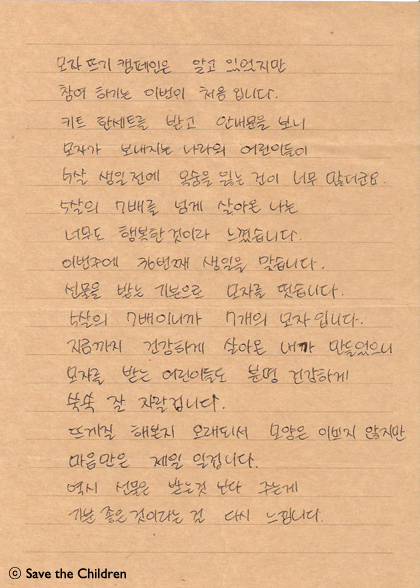 오늘은 시즌 4 참여하신 모자 후원자님께서 보내 주신 따뜻한 사연입니다.
