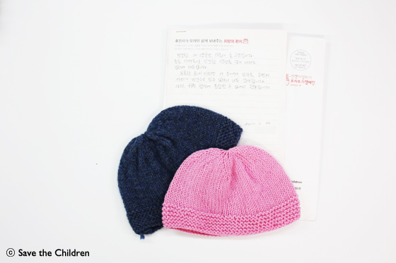 사진/ 자녀를 키워면서 겨울에 외출하기가 힘들었던 기억을 떠올리며 모자를 떴다는 모자 후원자님의 사연