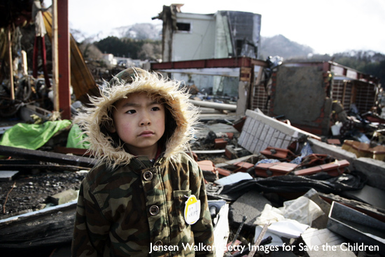 사진/ 두 번의 해일이 지나간 흔적을 보고 있는 오카 스즈노스케(6세)