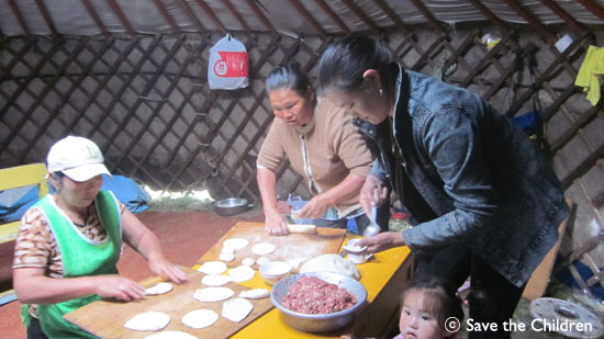 사진/ 게르에서 호쇼르를 만드는 모습