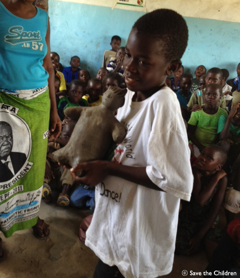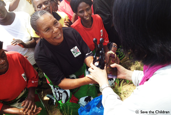 음식을 먹고 나서, 저희가 이동하려고 하자, 마을 여성분들은 환송의 의미로 다시 한번 노래를 부르고 춤을 추셨어요. 그 뒤 저희에게 커뮤니티 센터에서 여성분들이 직접 만드신 인형 두 개를 선물로 주셨는데, 하나는 전통 복장의 엄마가 아기를 등에 업고 있는 모습이었어요. 다른 하나는 목단을 깎아 만든 조각 인형이었는데, 엄마와 아빠, 그리고 두 명의 자녀를 형상화한 모습이었습니다. 조산사분께서는 우리는 세이브더칠드런에게서 많은 것을 받았어요. 그런데 우리는 이렇게 조금밖에 주지 못하죠. 하지만 당신들이 한국에 돌아가고 나면, 이 인형을 보면서 우리가 생각나고 그리워질 거예요. 세이브더칠드런이 우리에게 해준 보건센터 덕분에 이렇게 엄마와 아이에 대한 인형을 선물할 수 있게 됐죠.라고 말했습니다.