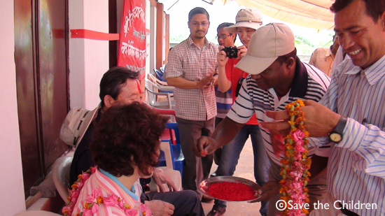 사진/ 나우바스타 마을 주민들이 한국에서 온 후원자에게 축복의 의미인 티카(이마의 붉은 점)를 찍고