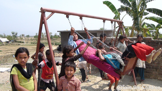 사진/ 스리딜람 학교 운동장에 새로 설치된 놀이터에서 즐겁게 노는 아동들
