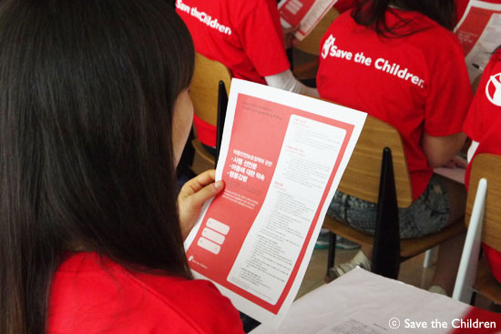 이 날 발대식에 앞서 영세이버들은 세이브더칠드런의 ‘아동안전보호정책에 관한 사명선언문, 아동에 대한 약속, 행동강령’을 모두 함께 한 목소리로 낭독하고 오른손을 들고 선서했습니다. 이 자리에 모인 44명의 영세이버들은 앞으로 1년 간의 활동을 통해 아동의 생존․보호․발달․참여의 권리가 실현되도록 책임을 다하고 서약을 지킬 것을 약속했습니다.
