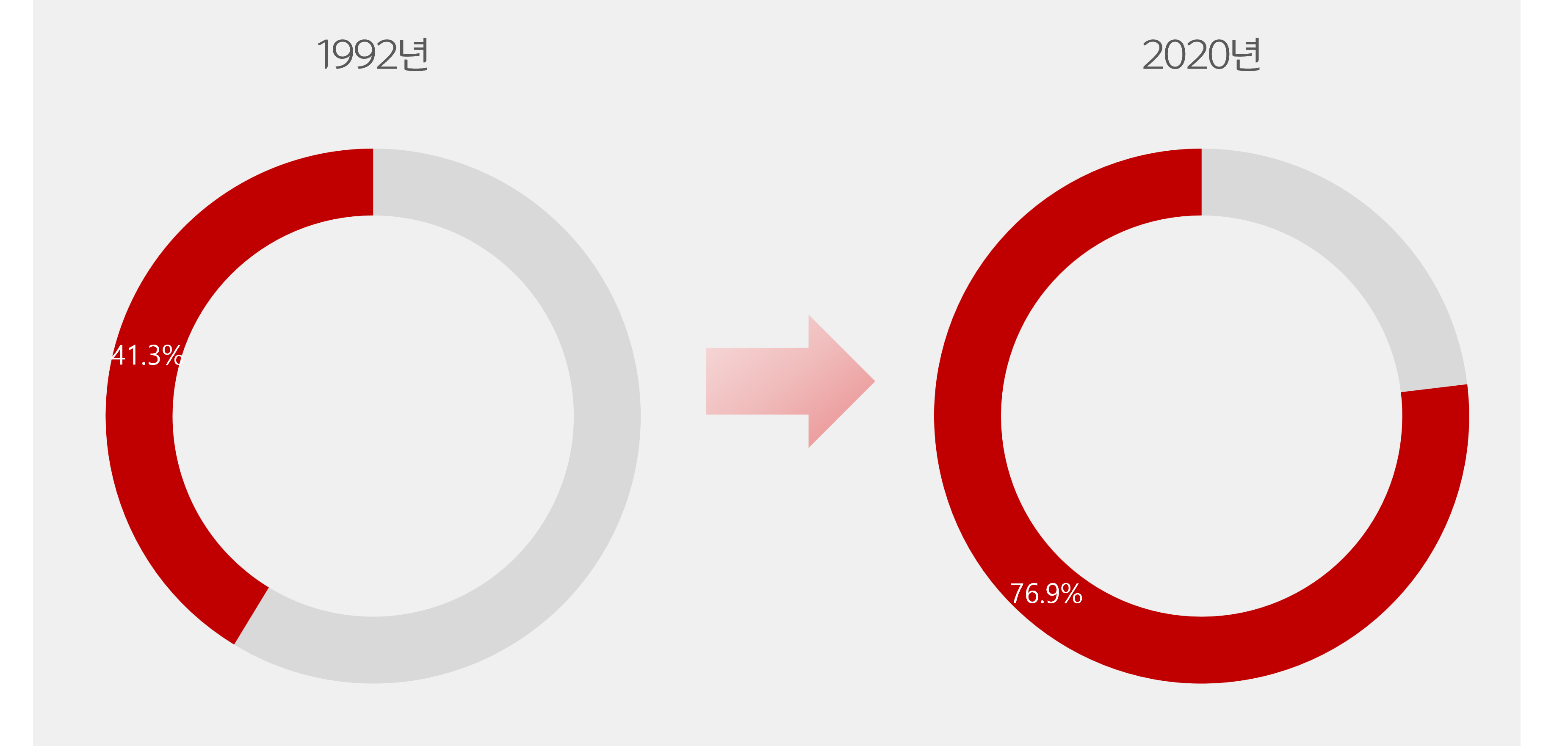 ▲ 몽골 정부의 국토 사막화 조사에 따르면 1992년 41.3%였던 사막화 비율은 2020년 76.9% 크게 증가했다.