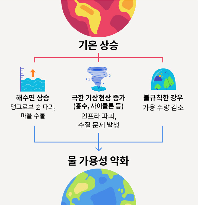 ▲ 사트키라 지역에서 겪고 있는 물 문제의 원인과 흐름