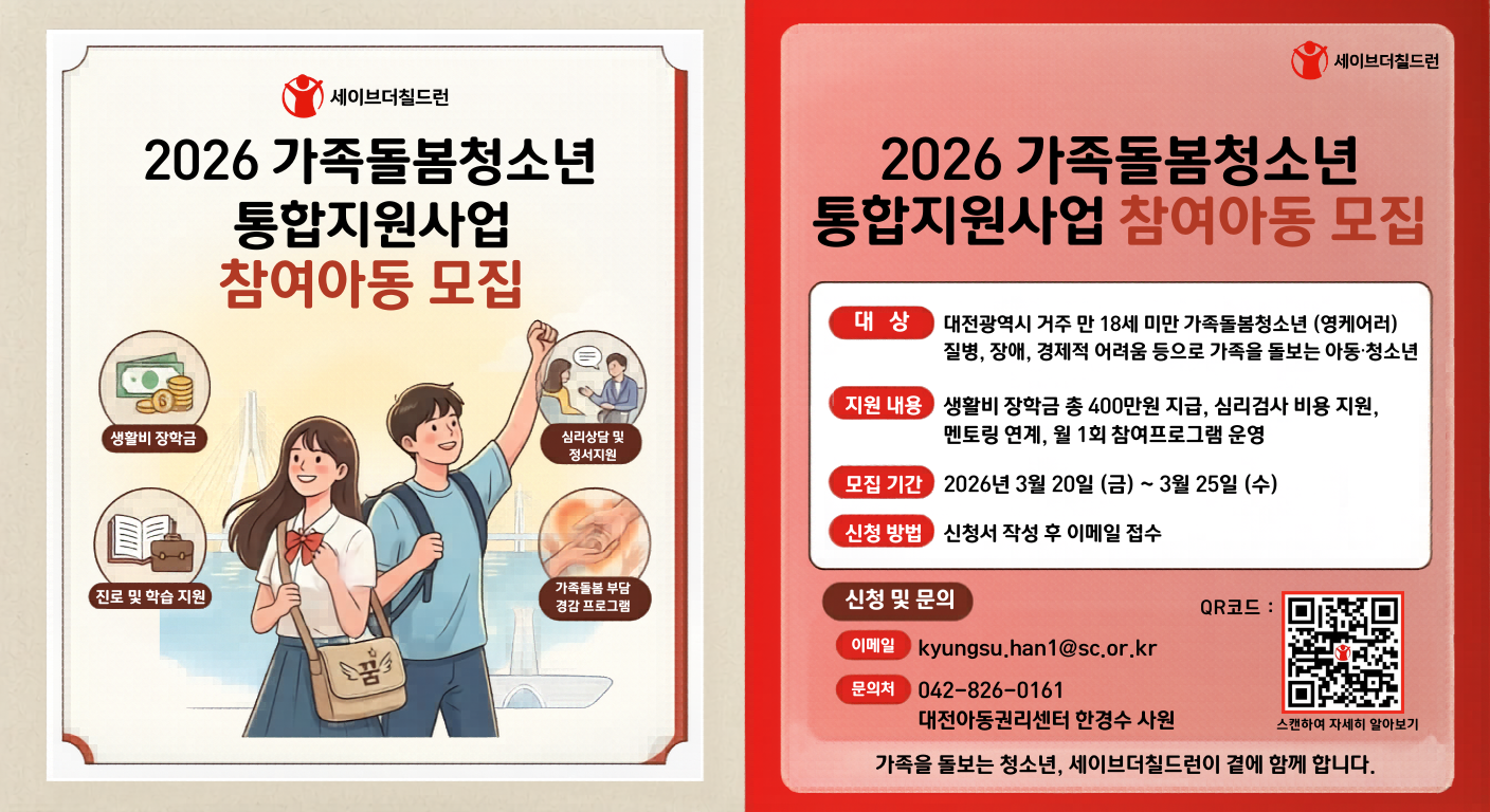- 접수처 : kyungsu.han1@sc.or.kr(세이브더칠드런 대전아동권리센터 한경수 사원)