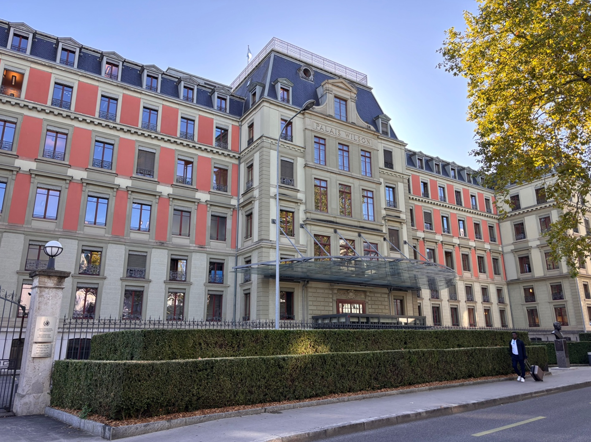 ▲ 제78차 유엔사회권규약 회기 심의가 있었던 유엔인권최고대표사무소 외부전경과 회의 안내문. 심의 중에는 사진 촬영이 전면 금지되어있다.