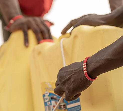 수작업으로 제작되는 긴급구호 팔찌는 캠페인