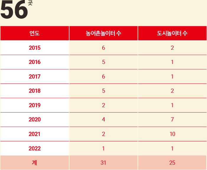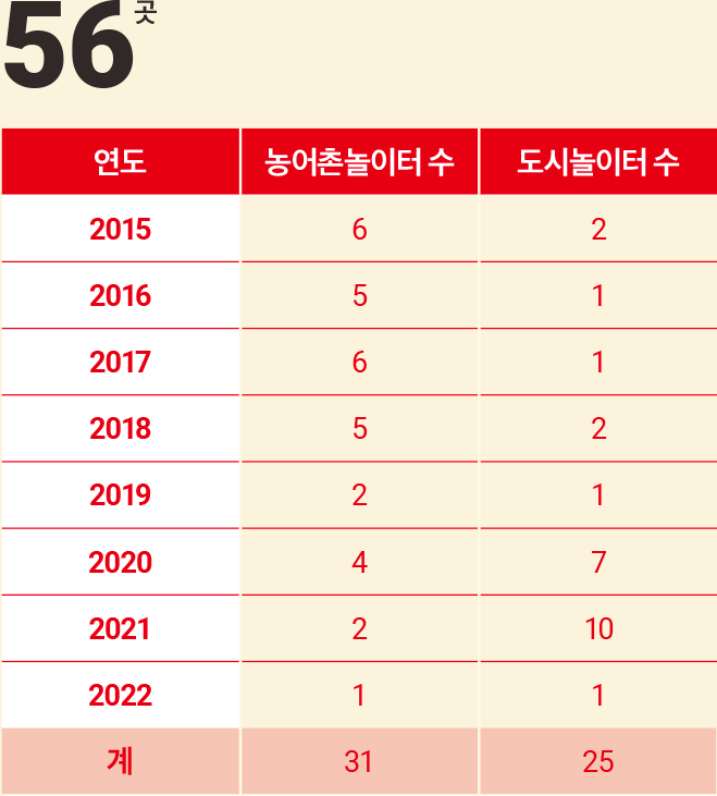 * 세이브더칠드런이 새로 짓거나 개선한 놀이터 개수로, 농어촌은 실내놀이터가 있는 지역아동센터까지 포함했습니다.