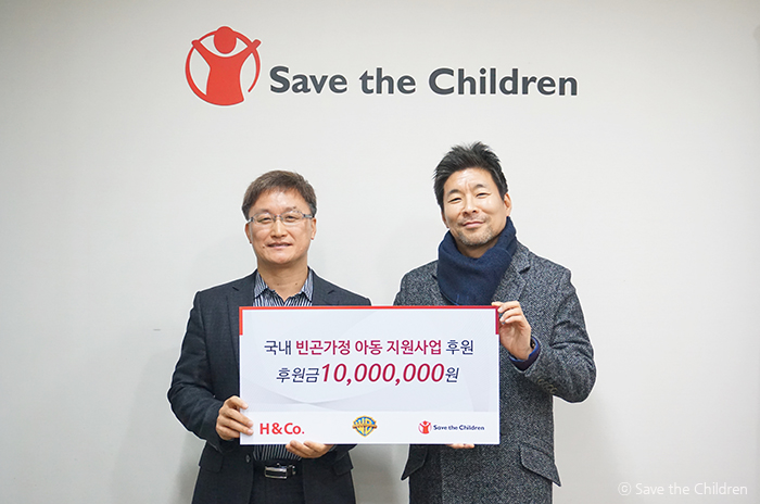 ▲ 12월 26일 해리슨앤컴퍼니(이현렬대표, 오른쪽)는 세이브더칠드런(이양구 후원개발부장, 왼쪽)에 국내빈곤가정 아동지원사업에 후원금을 전달하였습니다.