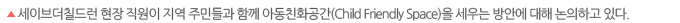 재난으로 아이들이 받은 충격과 심리적인 상실감과 트라우마는 아이들의 일생에 걸쳐 지속적인 영향을 끼치게 됩니다. 세이브더칠드런은 인도적 지원 활동에서 아동을 보호하고 이들을 위한 심리적, 정서적 지원을 하는 것을 최우선으로 하고 있습니다.