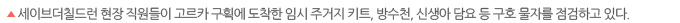 이들은 현지 피해 상황 조사가 끝나면 지역 정부 관계자와의 협의를 마친 뒤, 임시주거지 키트 25개, 방수천 200개, 침낭 100개, 가정 용품 키트 100개, 영아 용품 키트 50개, 유아 용품 키트 50개를 주민들에게 배분할 계획입니다.