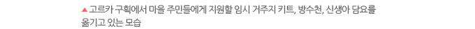 - 임신기 여성, 모유 수유 여성, 5세 미만의 아동, 극빈 가정 등을 우선으로 지원하는 가운데 피해가 심각한 가정에게 구호 물자를 제공했습니다. .