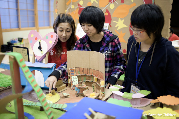 2011년 세이브더칠드런이 지진 피해 지역 아이들 1만여 명에게 ‘우리 마을을 위해 도움이 되고 싶은지’ 물었을 때 ‘그렇다’고 답한 아이들이 90%에 가까웠습니다. 이러한 아이들의 의지를 바탕으로 세이브더칠드런은 이와테현 리쿠젠타카타시, 야마다 마을, 미야기현 이시노마키시 등 3곳에 ‘마을만들기 아동클럽’을 만들었습니다. 이곳에서 아이들은 자신이 바라는 마을 모습을 논의해 그 결과를 지방 정부에 전했고 이를 바탕으로 마을 재건의 상징이 될 조형물과 아동센터를 주도적으로 만들었습니다.