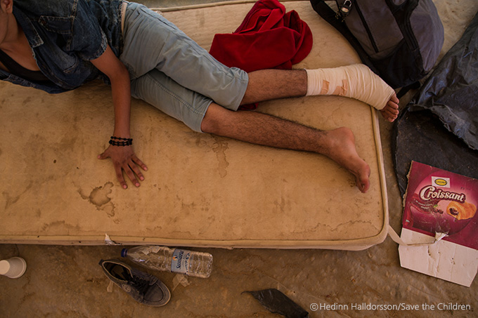 “여기 온 첫날 절벽에서 떨어져 다리가 부러졌어요. 경찰이 병원에 데려가 줘서 다행히 깁스는 했지만 약은 받을 수 없었어요. 처방전이 있어도 약국에 가지 못하기 때문이에요. 난민들은 절대 임시 캠프를 떠나면 안된대요. 다리가 너무 아파서 밤에는 잠도 제대로 잘 수 없어요.