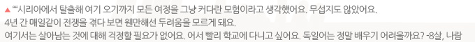 시리아를 탈출하는데 어른 1명당 1200달러, 아이는 600달러를 냈어요. 며칠을 꼬박 걸었죠.