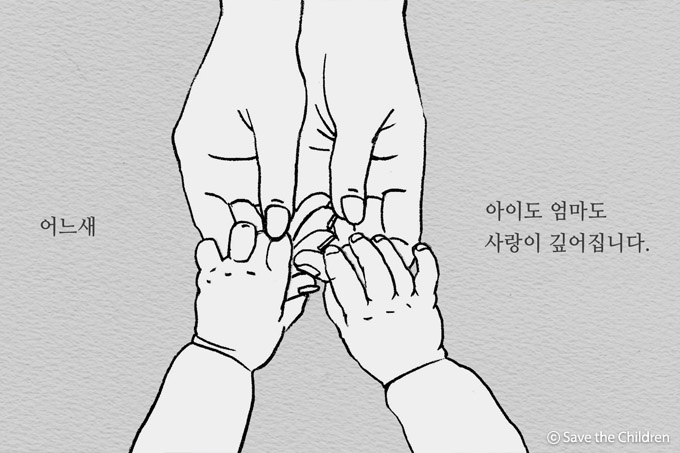 아이는 사랑스럽지만 몸은 고단한 육아를 재치있게 그려낸 웹툰으로 사랑받는 작가가 있습니다. ‘쪽잠자며 그리는 직장인 아빠의 육아웹툰’을 그리는 ‘그림에다’ 심재원 씨입니다. 지난 8월 그는 세이브더칠드런의 ‘나눔첫돌잔치’을 소개하는 영상을 재능기부로 만들었습니다. 그의 웹툰처럼 이 영상에도 고단하지만 행복한 부모가 있습니다. 여기에는 육아 휴직을 내고 아이를 곁에서 키웠던 그의 경험이 녹아있습니다.