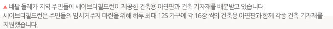 •네팔 9개 지역에 586개의 임시학습센터 (Temporary Learning Centres) 건립