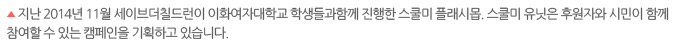 A 스쿨미 캠페인의 목표는 크게 두 가지예요. 하나는 사업 효과성을 엄밀하게 이야기할 수 있는, 현지 상황에 잘 맞는 사업을 개발하고 그 결과가 좋으면 다른 지역으로 확산하자. 그러기 위해 질 높은 프로그램을 만들고 효과를 잘 연구하자. 두 번째는 후원자가 참여하게 하자. ‘신생아살리기 모자뜨기캠페인’처럼 후원자와 시민이 참여하는 자리를 만들자.