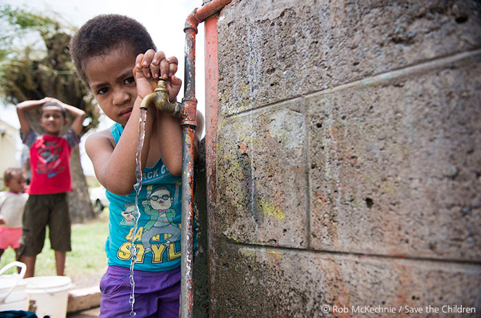 긴급 재난 상황 이후, 아이들은 깨끗한 물과 제대로 된 위생 시설에 접근할 수 있어야합니다. 세이브더칠드런은 피지 각 지역에 식수와 위생시설을 지원했습니다.