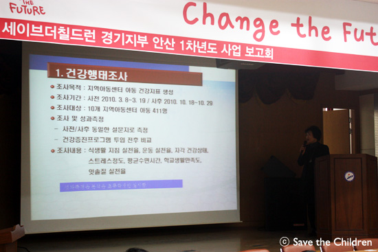 특히 신체/건강분야와 관련하여 신체활동 자문위원이신 안산공과대학 레져스포츠과 최조연 교수님이 직접 발표해 주셨는데 사업 초기 시점과, 1년이 지난 지금을 비교하여 보았을 때, 아이들의 신체발달수준이 전체적으로 향상된 것을 자료를 통해 확인할 수 있어 이 자리에 모인 모든 분들이 CTF사업의 효과성을 다시금 확인할 수 있었습니다. 이 글을 보고 계신 부모님 중 아동이 지역아동센터를 다니고 있지 않다면 지금 바로 인근 지역아동센터를 찾아보세요. 그리고 외치세요! “여기가 세이브더칠드런 Change the Future 센터인가요~?” 저희 세이브더칠드런은 아이들이 신체, 정서적으로 밝고 건강하게 성장할 수 있도록 늘 노력합니다!