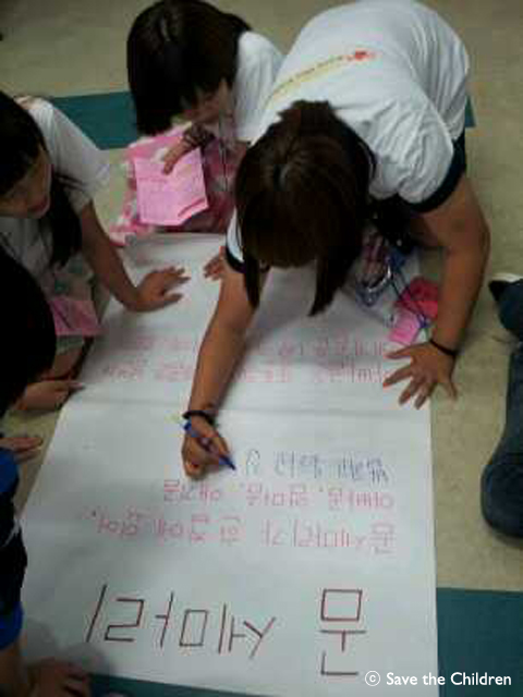 진지한 얼굴로 따뜻한 마음을 전하고자 하는 메시지를 열심히 적는 아동들의 표정에서 이 권리 캠프가 어쩌면, 아동권리가 보장되는 세상을 위한 하나의 희망이 되지는 않을까 잠시 설레는 생각을 품어보기도 했습니다.