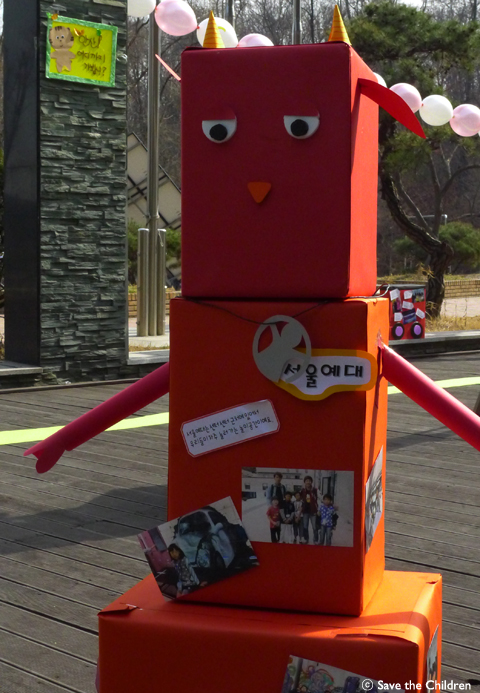 사진/ 세이브더칠드런의 ‘빨간염소래퍼’가 차일드클럽의 수료식을 방문했습니다.